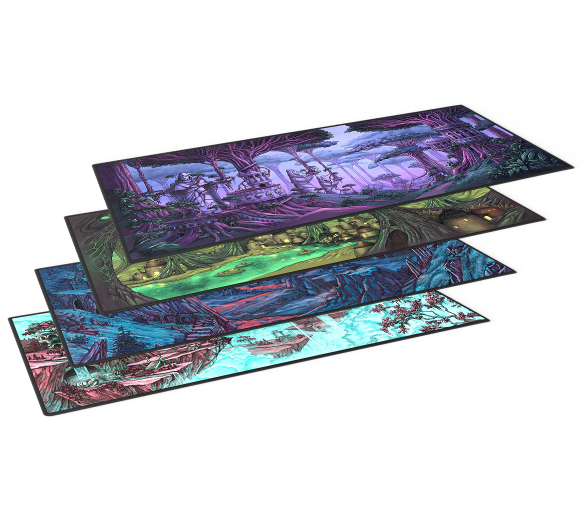 Extend your elevated expectations beyond your deck ... to your desk. What began as an effort to make TCG playmats worthy of design professionals resulted in these luscious, oversized desk mats that can easily overachieve at Friday Night Magic but are so much more than that. Beautiful, tasteful illustrations crisply printed on thick neoprene with carefully-stitched edges make these worthy of even your most sophisticated spaces.